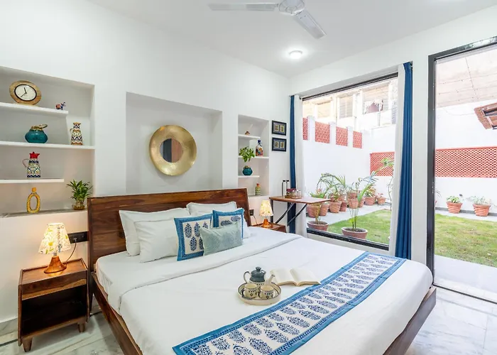 The 4-bedroom Alaya Stays Ramalaya 4 Bhk Villa With Garden Jaipur offers proximity to nearby tourist spots, such as the Man Sagar Lake, situated around 10 minutes' drive away.